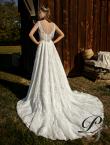 Princess-silhouette ivory dress, made in boho style. The corset is made of natural lining and high-quality satin, on which soft tulle is sewn from the neckline to the back. It is decorated with beads embroidered guipure as well as matte beads embroidered fringe, going from the shoulder to the back. There are sewn cups in the front corset (push-up). The corset is laced up with satin hidden lacing and fastens with buttons in the form of pearls. The skirt is made of natural lining covered with 6 layers of soft royal tulle and 3D canvas lace continuing into a long train.